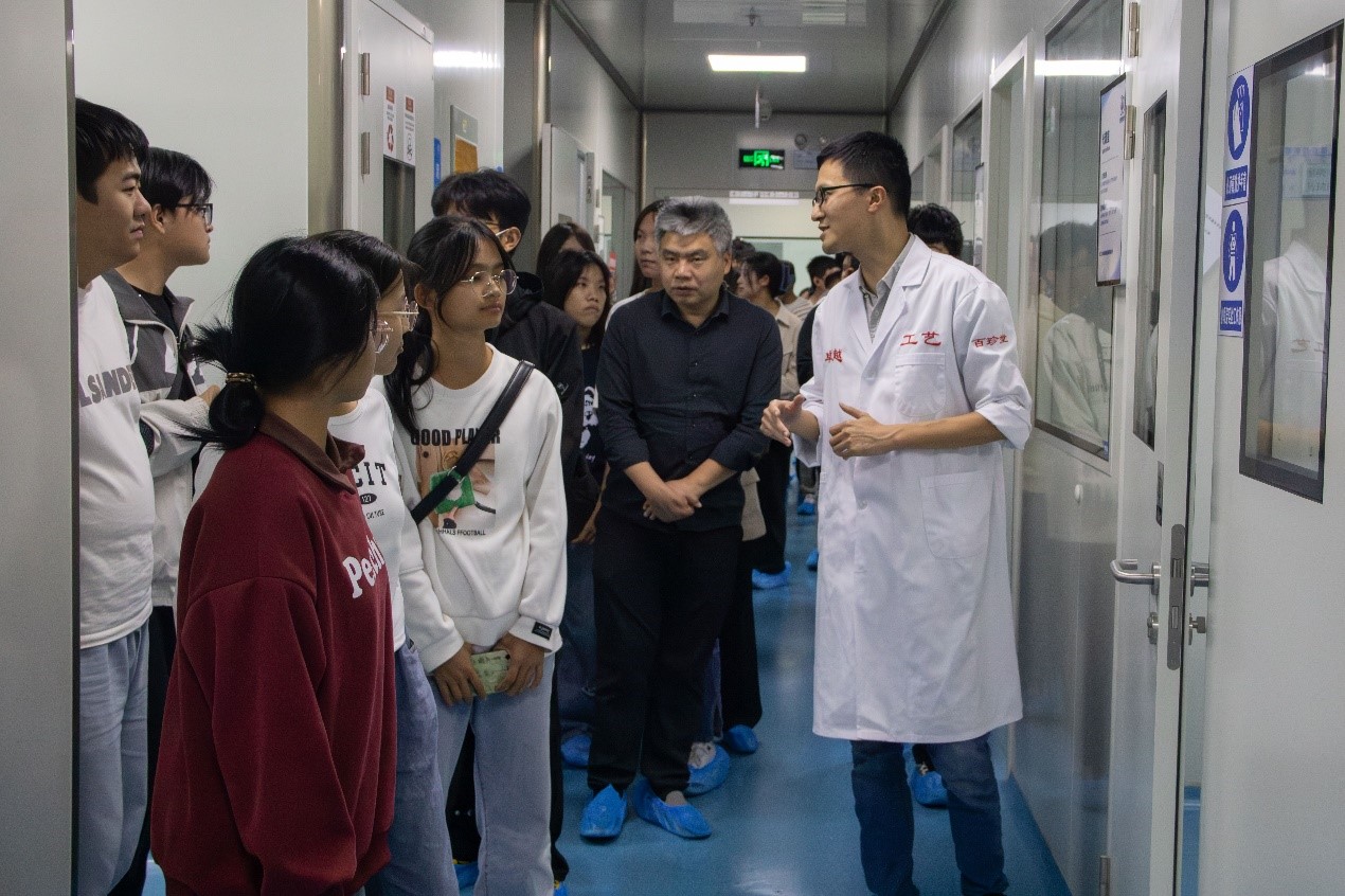 首先映入眼帘的是大型无人操作车间,一台台机器矗立其中,进行高效操作,激发了同学们浓厚的兴趣。随后工作人员带领着同学们进入监控室,对各式各样的机器进行了讲解,帮助同学们对车间的运作流程有了更好的了解。紧接着是“生物实验室”,在工作人员的讲解下,同学们了解到了眼前的装置是如何精细且高效地检验食品安全的。带队老师针对该实验室的安全问题提出了自己的疑问:“人进入这个实验室之后,如果实验室检验的食品出了问题的话,对于实验操作人员的身体健康会不会有什么影响?”工作人员细致耐心地回答了老师的问题:“二级实验室一般是不会有安全问题出现的,即使出现了也只会导致腹泻等症状,一段时间后就会恢复正常,不会对我们的身体有很大的影响。”随后同学们跟随工作人员进入二楼,在连廊参观了各种各样的车间,也在工作人员的讲解下了解到了该企业的一些领导人员以及企业营业现状。最后,同学们来到了六楼的会议室。在会议室里,同学们了解了企业的发展历程。从传统的加工制造产业逐渐向科技创新产业领军人转型,开始智能化改造创新。企业地点也由点到面,逐渐辐射到全国各个省市,甚至还开展了一些国际化的拓展业务,正在逐步与欧美国家建立产业链。它的一步步发展又何尝不是在告诉同学们要脚踏实地,立志高远,一点点地努力成为自己想要的样子。除此之外,工作人员也给同学们讲述了一些工作、创业方面的经验之谈,对此,同学们也提出了一些自己的疑问,例如“怎样才能获取进入你们企业实习的资格?”“现在的我们可以为以后的实习以及工作提前准备一些什么?”同学们提出的问题也都一一得到了解答。